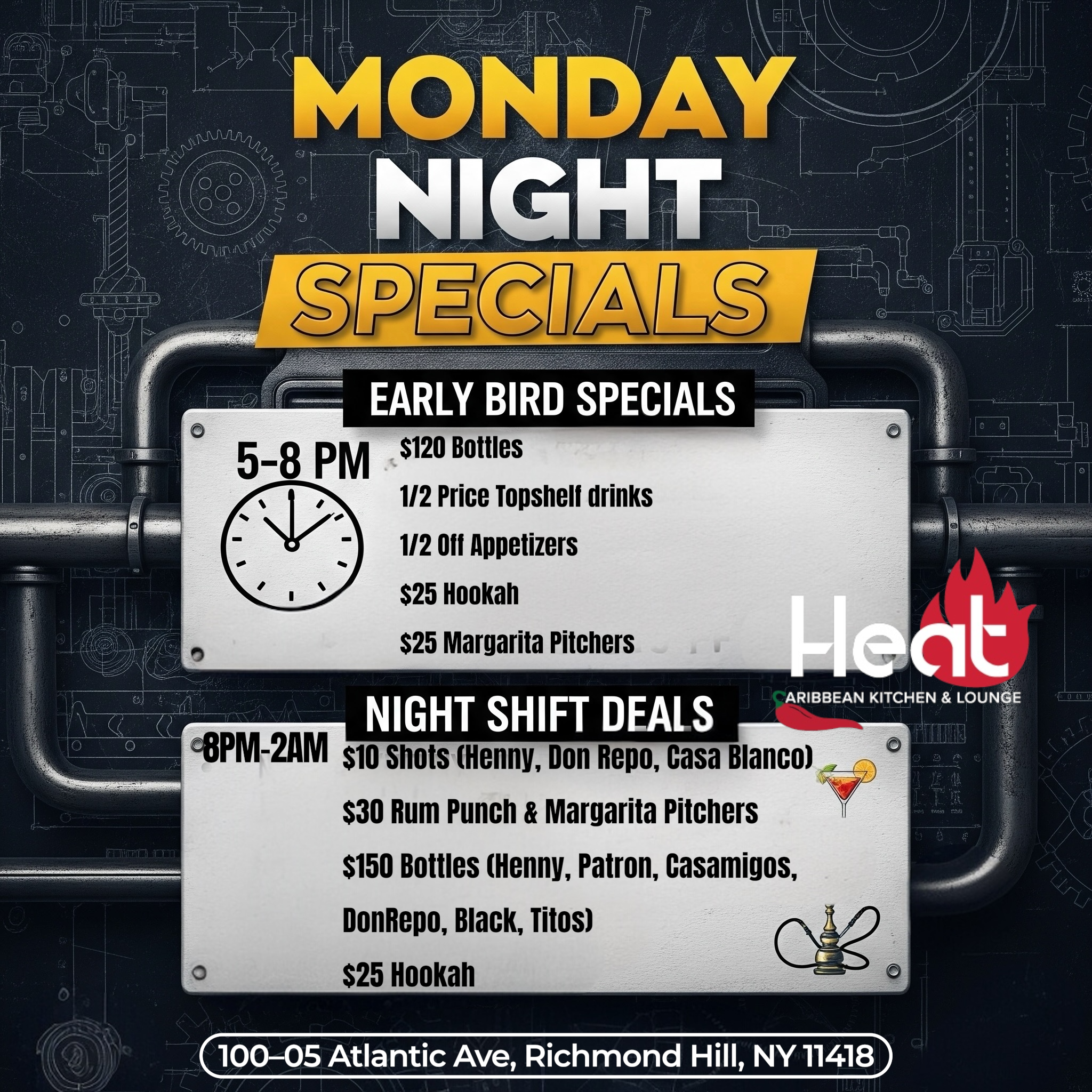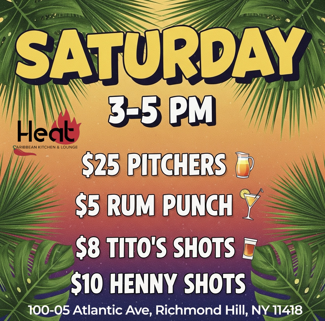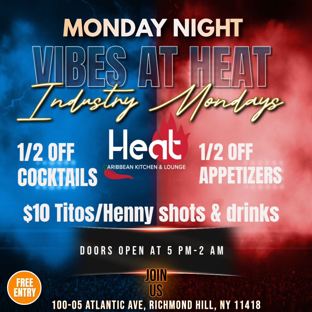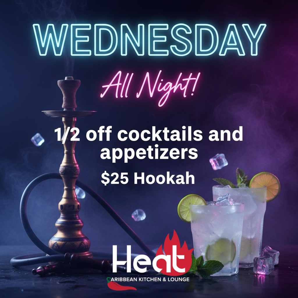 Sunday brunch 12-6 PM featuring mouthwatering favorites, jerk chicken or shrimp curry roti wraps, chicken & waffles, steak and eggs and dishes with the Caribbean flair.
